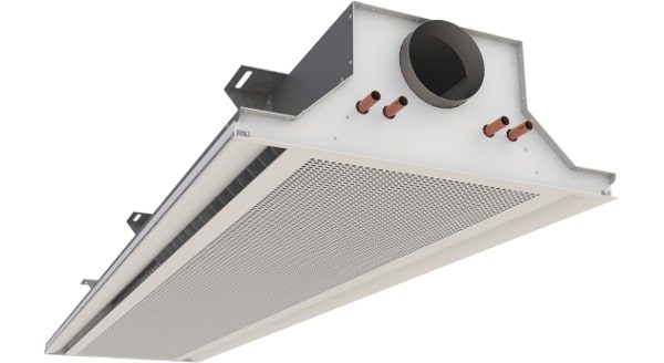 Eco beams all have a “closed back”, thus meaning that all induced air (recirculated room air) is induced through the underplate within the room space to avoid any need for perimeter flash gaps and/or openings in the ceiling system. This also provides for a better quality of recirculated air as the recirculated air does not mix with any air from the ceiling void. The induction ratio of Eco is typically 5 times that of the supply air (fresh air) rate.