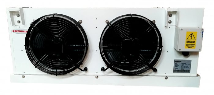 Greenhalgh evaporator is a high-efficiency heat exchanger. Capacity design according to themost popular compressor sizes in this range. Fin and tube design for maximizing the sensible capacity and minimizing the latent heat and frost losses in balance with a cost-efficient heat transfer coefficiency. There are E2-series for medium or low temperature. Fin spacing can be made from 4.2mm to 6.0mm. Greenhalgh chooses only low specific energy consumption fans. Robust stainless steel electric heater with high isolation cable connections to meet UL-SA51 02 and CSALR1 8489 standards and ensure the safety of the equipment.