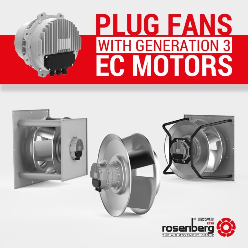 Rosenberg Australia, supplies EC plug fans from Ecofit and Rosenberg with wheel diameters of 190mm to 710mm, with capacities up to 6.8KW with an ever-increasing range.
